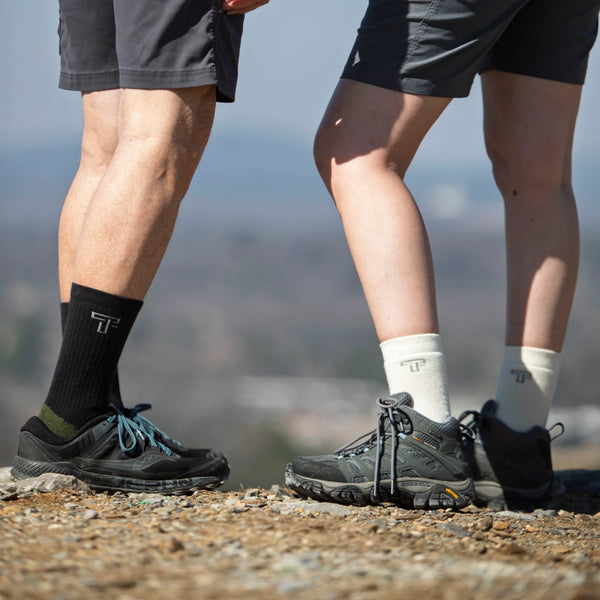 Our fibers wick moisture away from your skin and can absorb around 30% of their weight before you feel wet. This moisture is then released from the fabric through evaporation. Our technology enhances this natural moisture movement and will not allow the socks to become wet and heavy.